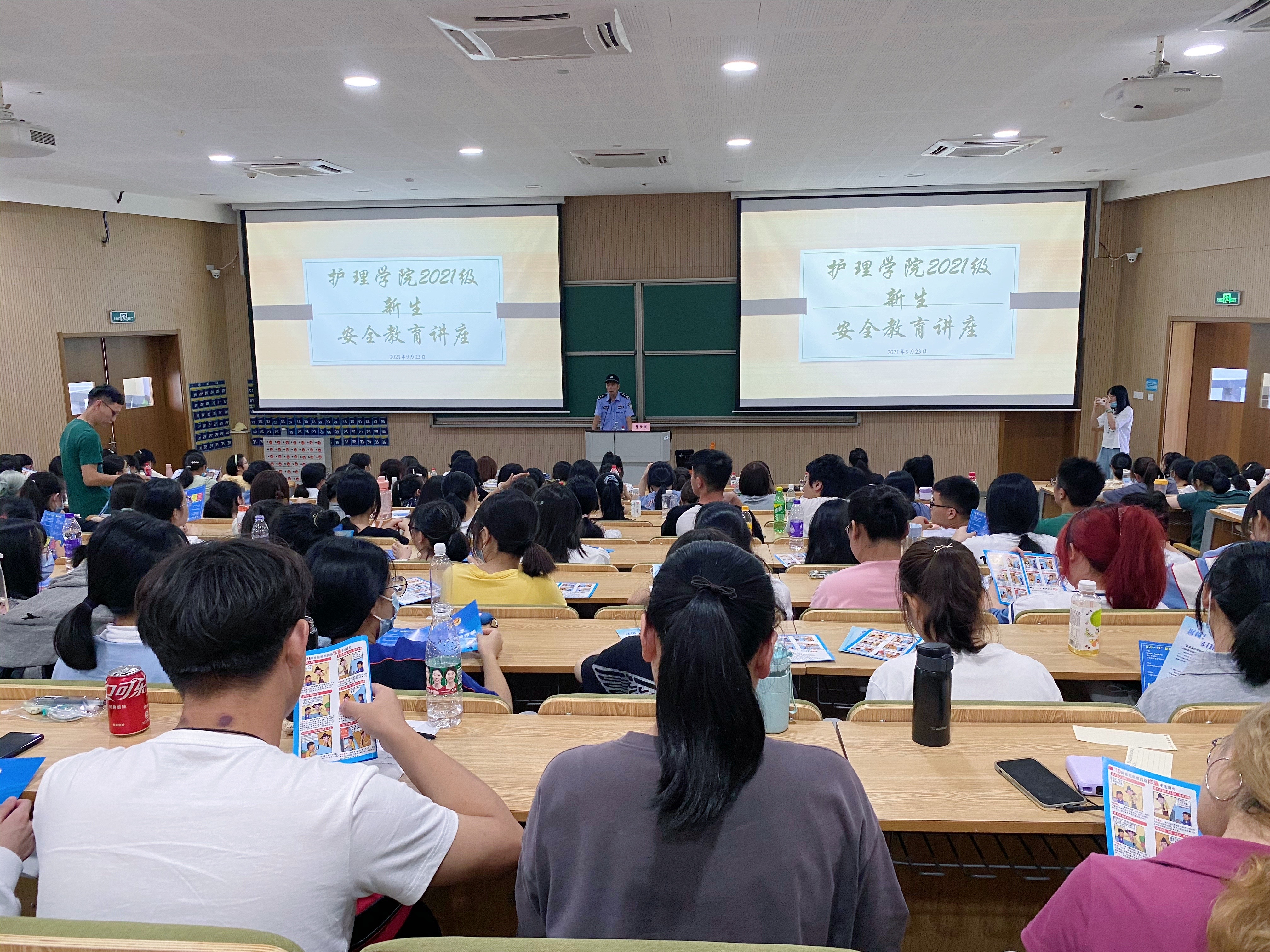 2021年9月23日下午,护理学院全体学生在勤园七号楼举行了安全教育讲座。讲座邀请到了张梦洲警官。此次活动讲座旨在创建平安校园,维护大学生人身、财产安全,提高大学生的安全防范意识与自我保护能力。
