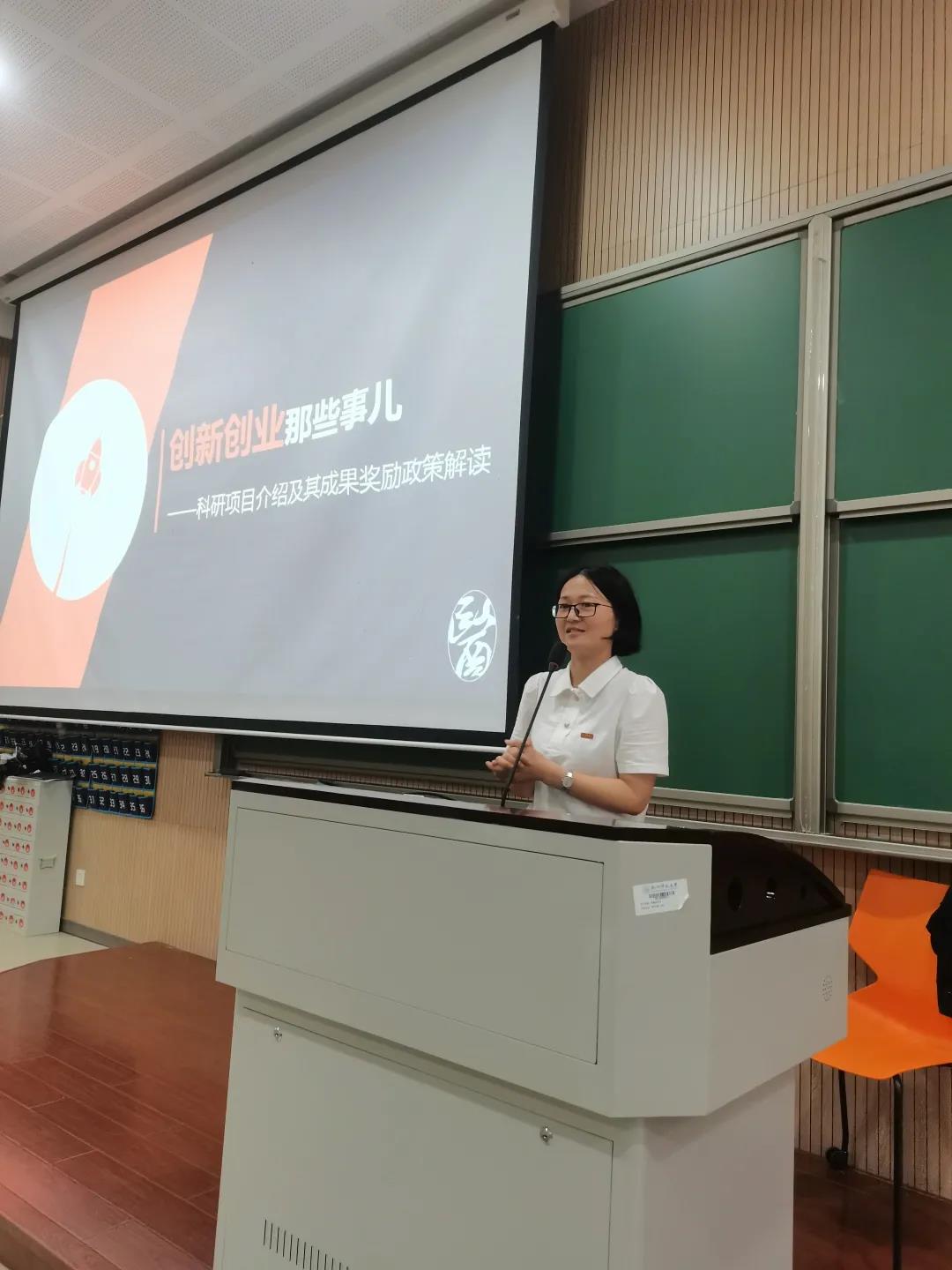 之后褚晶晶老师着重在创新创业科研项目的成果奖励政策上为同学们做了细致的解读,从物质和精神上激励同学们勇于面对科研路上的挑战。