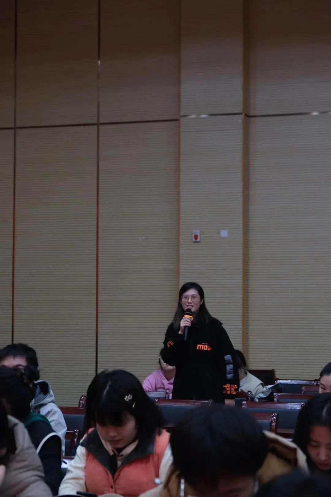 陈情校友还分享了她大学时的课余活动,她说学校课余生活十分丰富,有很多社团,还有很多比赛和志愿者活动,她在大二的时候参加过一次互联网大赛,这对她帮助很大,在这过程中,她学到了许多新的知识,遇到了许多优秀的人。在和他们的交流中渐渐发觉到自己与他们之间的差距,这种差距促使她想要变成一个更加优秀的人。
