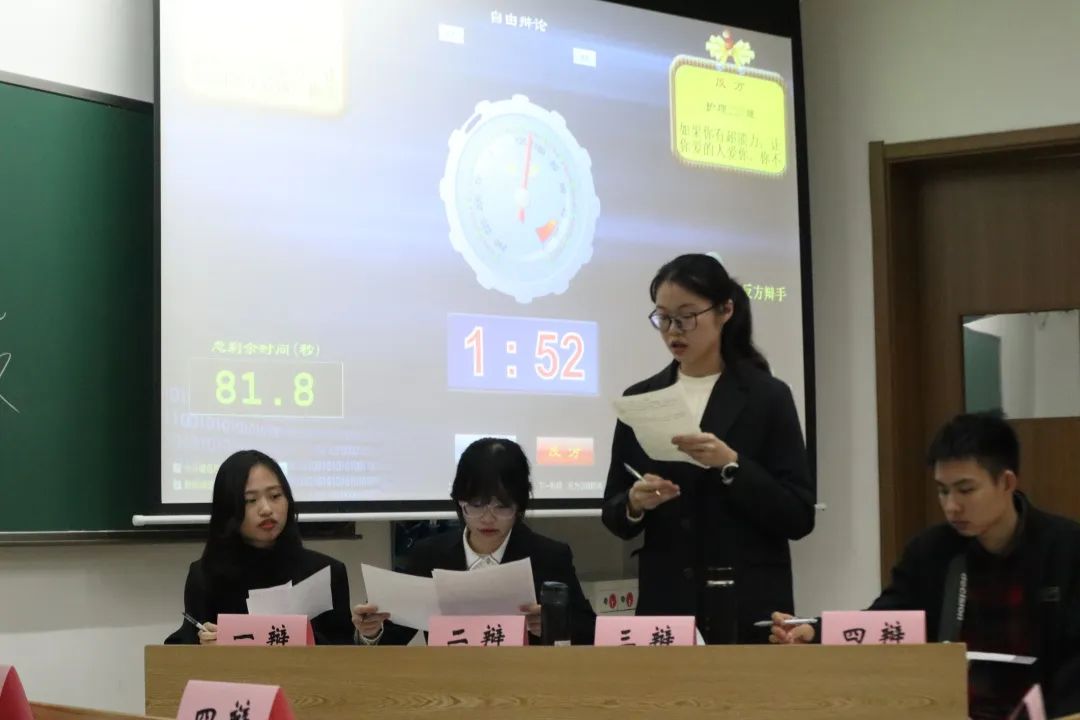 比赛开始,一辩立论,正方辩手滔滔不绝,文采斐然。反方辩手,从容自信,声音明亮。他们都以独特的视角对辩题做出了清晰的阐释,加之生活化的语言让辩论赛场鲜活灵动。