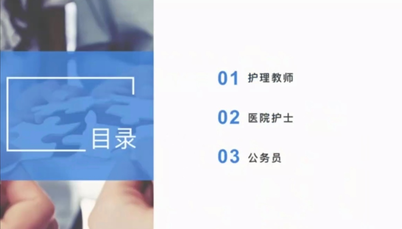 紧接着,邢冰玉学姐根据自己的求职经验展开了分享。她介绍了护理教师、医院护士、公务员三种岗位的应聘流程,分享了许多关于求职方面的注意事项和备考公务员时的学习规划,最后给出整体建议:1.尽早完成毕业论文初稿,安心找工作;2.应聘前文章多多中,丰富自己简历;3.护理教师编尽早准备专业课知识以及多多练习无生试讲;4.面试过程中站稳讲台,举止得体,自信从容,有话说、流利说;5.多多尝试,再做选择。