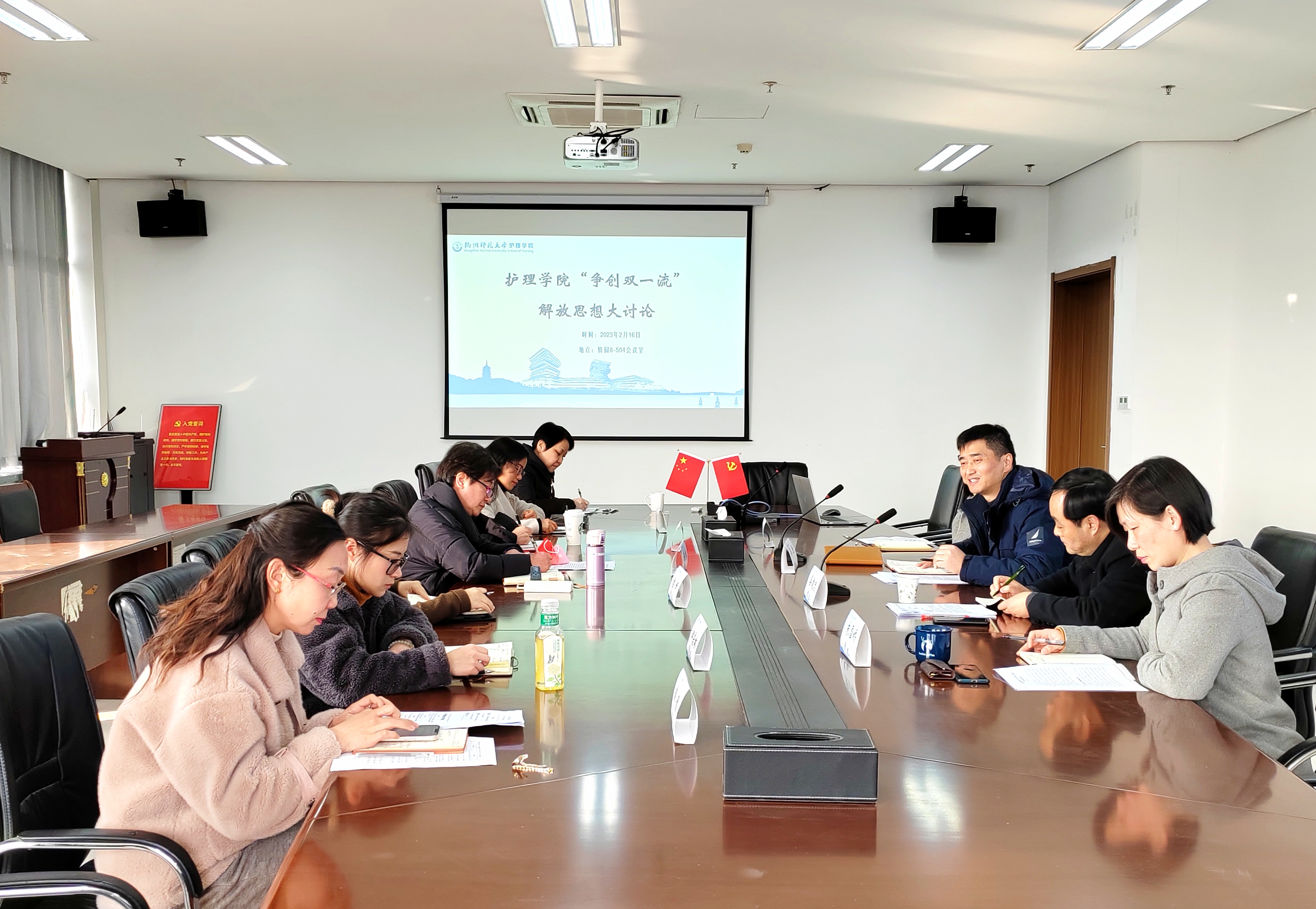 2月16日下午,护理学院开展了“争创双一流”解放思想大讨论活动,校党委委员姜建忠、学院领导班子、教师代表等参加了本次活动。