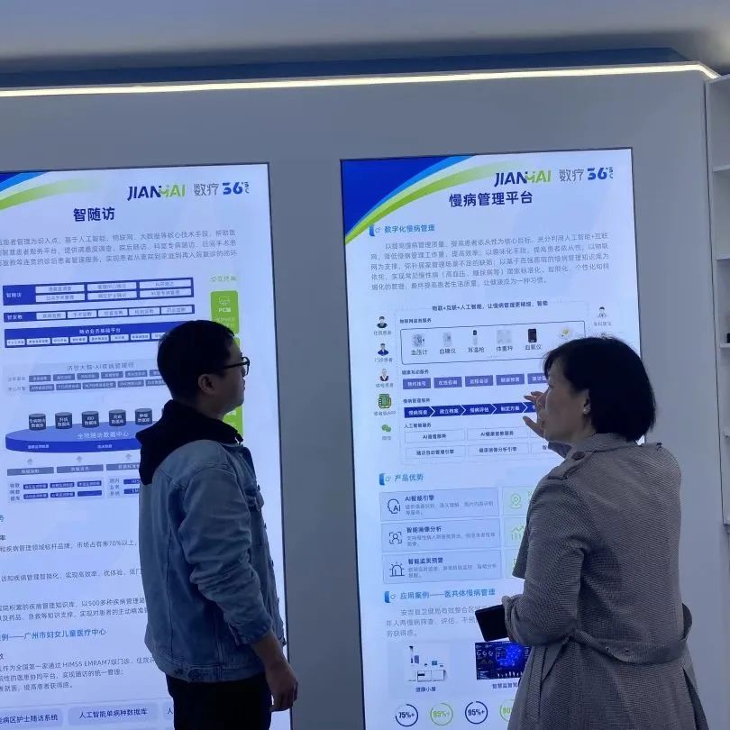 随后,双方就针对数字疗法、健康教练两大核心能力举行座谈会,健海李总为大家分享了健海科技在“互联网+诊后疾病管理”领域的创新实践,双方针对健康教练技术、科研创新等课题展开深入讨论。