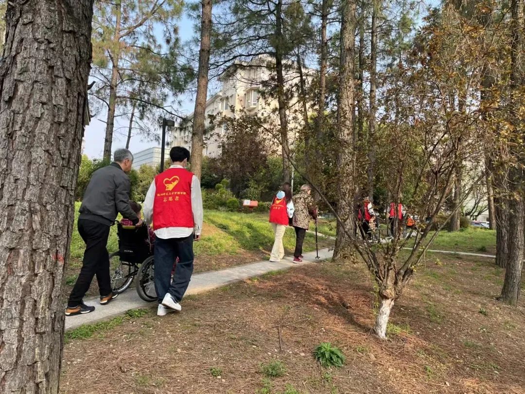 今日出门春正好,樱花如霰晓莺啼。怕爷爷奶奶们腿脚不便,志愿者们推着轮椅,搀着手臂,与爷爷奶奶们共赴春日!