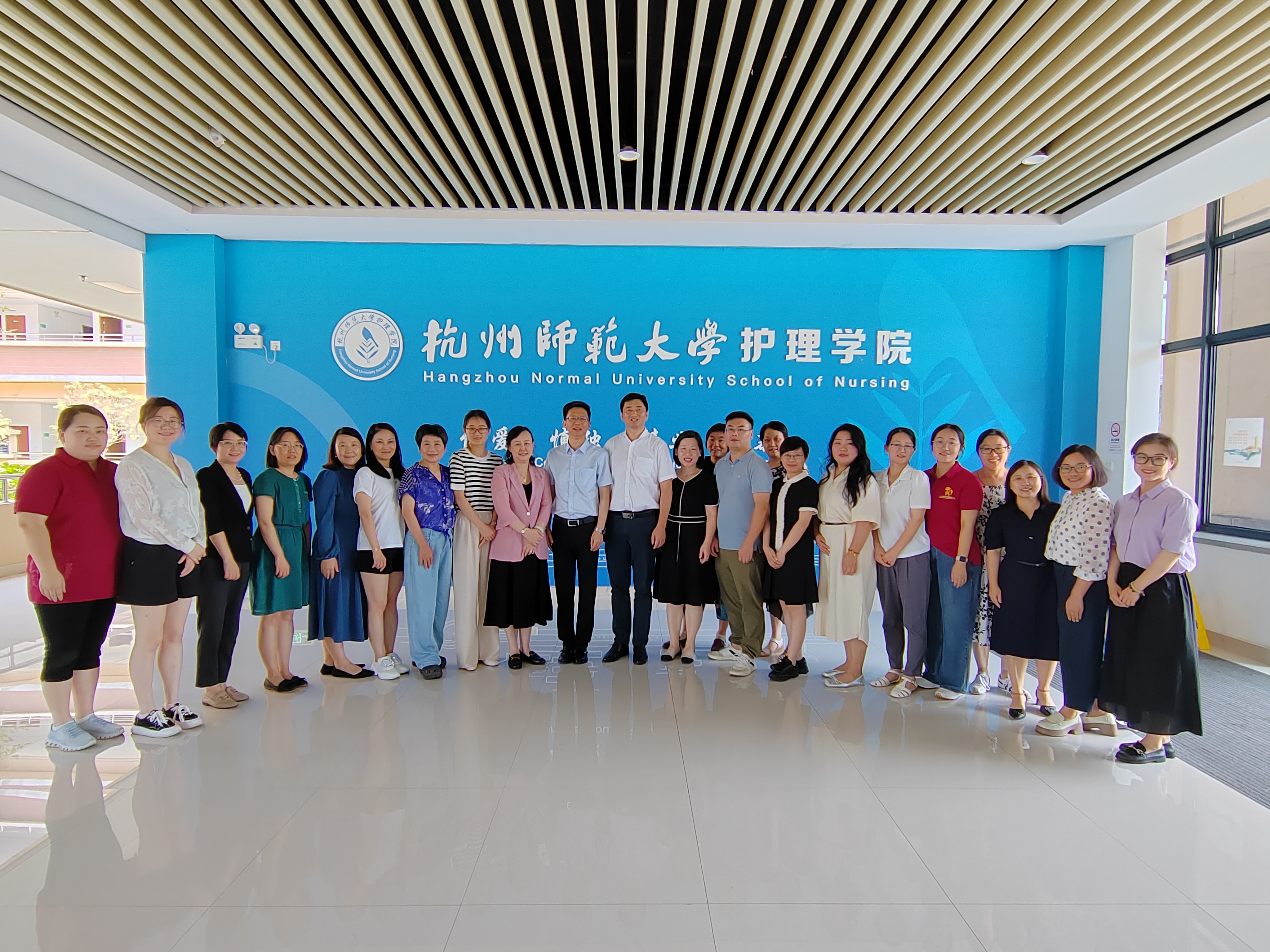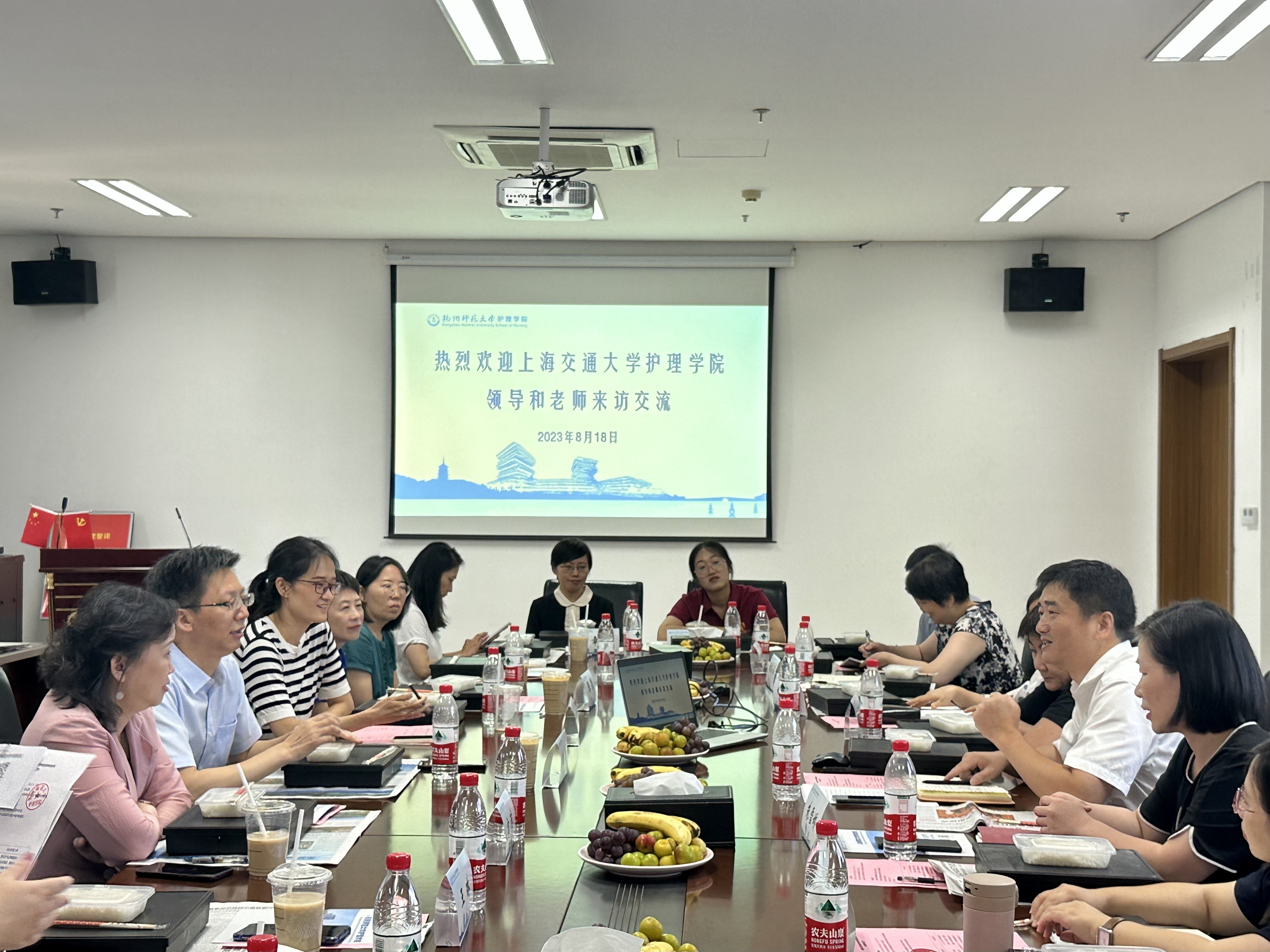 8月18日上午,上海交通大学护理学院由党委书记章新、副院长方琼、朱冰倩以及各教研室主任、党支部书记及学科办主任、综合办主任一行13人,来我院进行访问交流。我院高度重视此次交流机会,党总支书记汪胜、副院长朱雪娇及各教研室主任、行政科室负责人共同接待了来访人员。