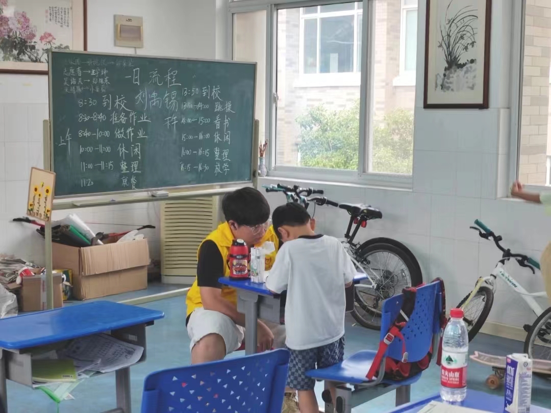 对于小候鸟爱心班的管理,社会实践小分队的成员每日都在尽心参与小候鸟的学习阅读、休闲娱乐、户外运动、午饭午睡、课余技能拓展。