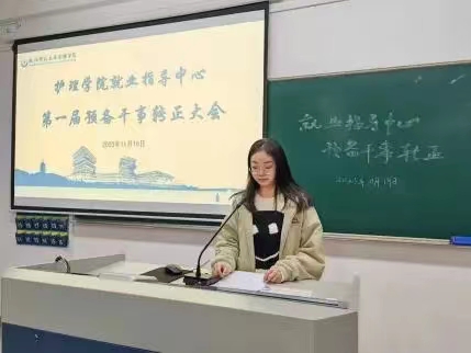 考核结束后,护理学院就业指导中心第一届预备干事转正大会暨第一次全体成员会议于下沙校区A-213教室举行,本次会议由就业创业部干事钱炜主持,就业指导中心所有成员参与。