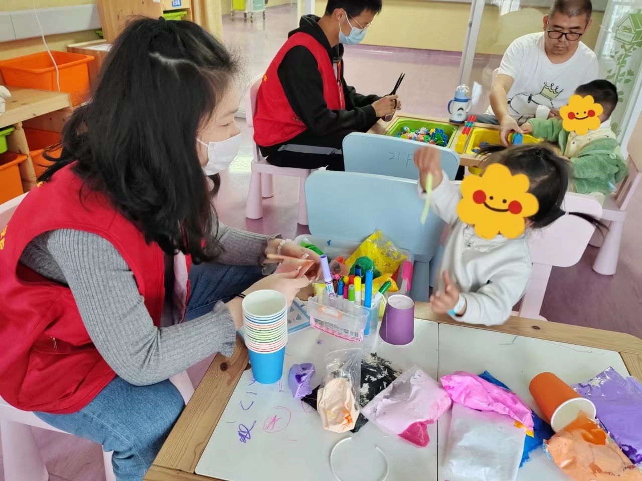 短短三小时,看着他们无拘无束,或也将释放我自己的天性。很多跟我们做纸杯花篮的小朋友手还没剪刀大,却是一步步跟着做出了多彩的花篮。热情活泼的小弟弟跑着做游戏,他最爱说:“我有一个新想法!”,安静内敛的妹子悄悄作画,那是她内心的美好小世界。