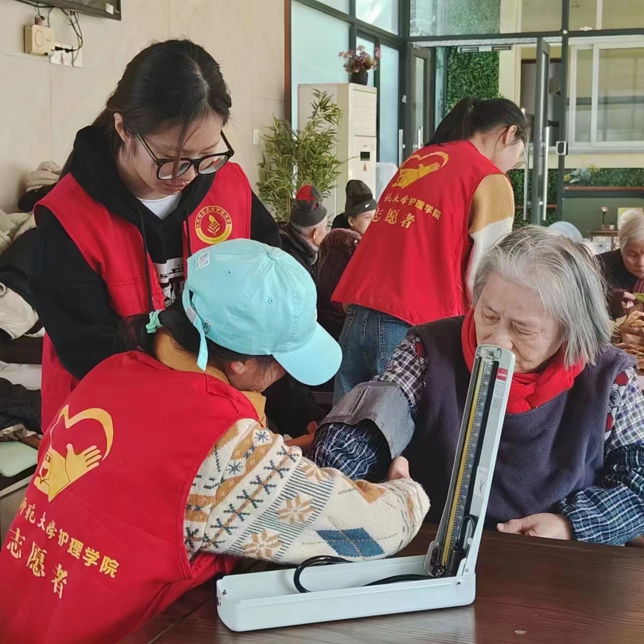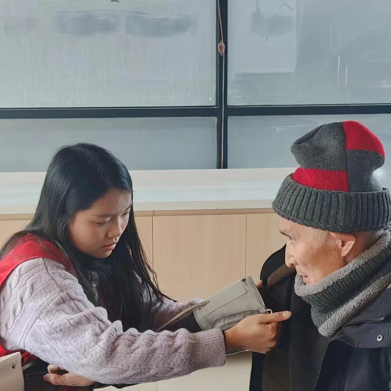 定期测量血压血糖是关注并了解老人们身体状况的重要途径,看到老人们健康的数据,志愿者们心里也由衷地为他们感到高兴。