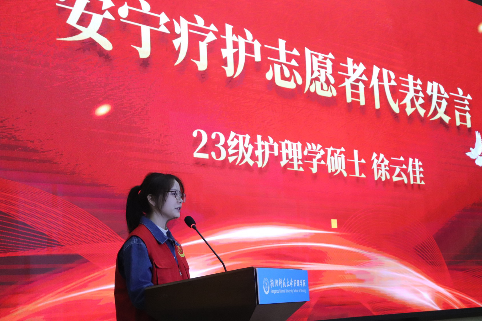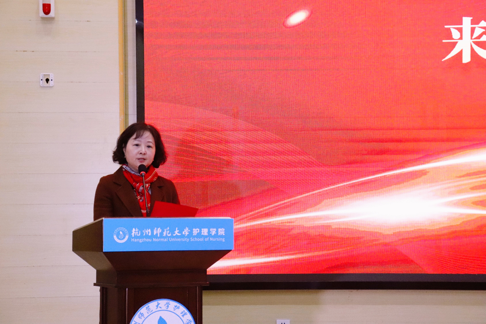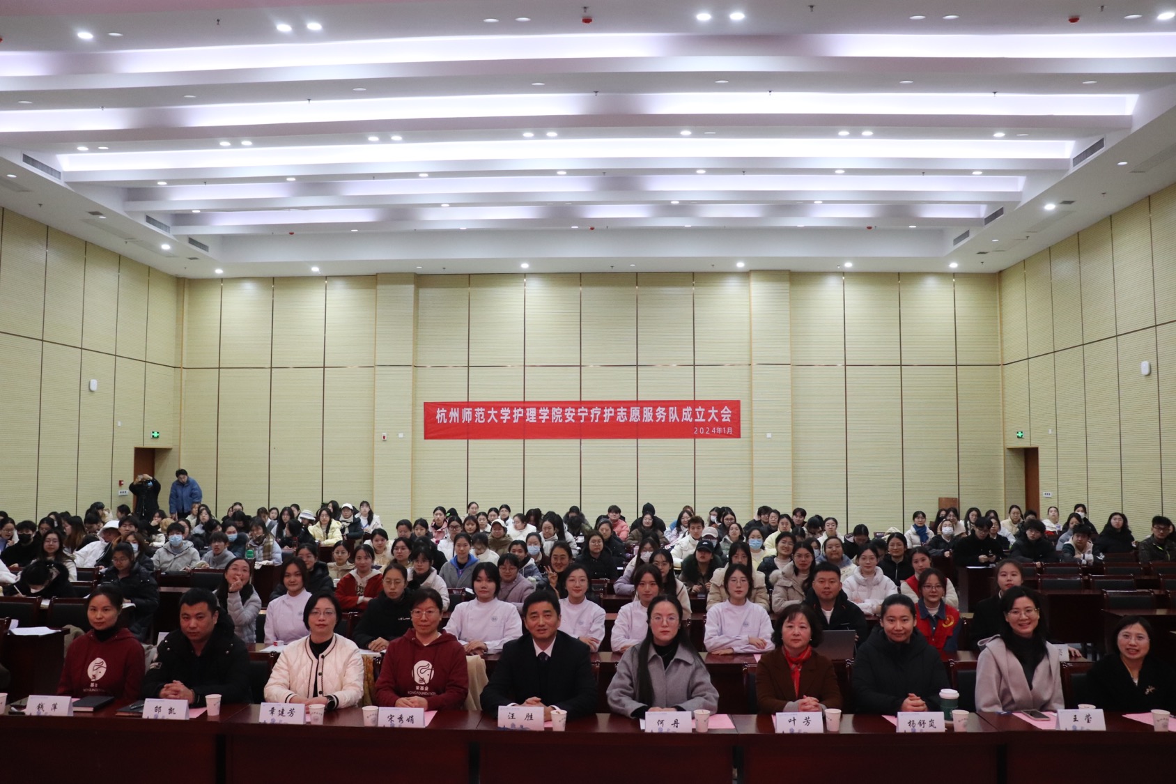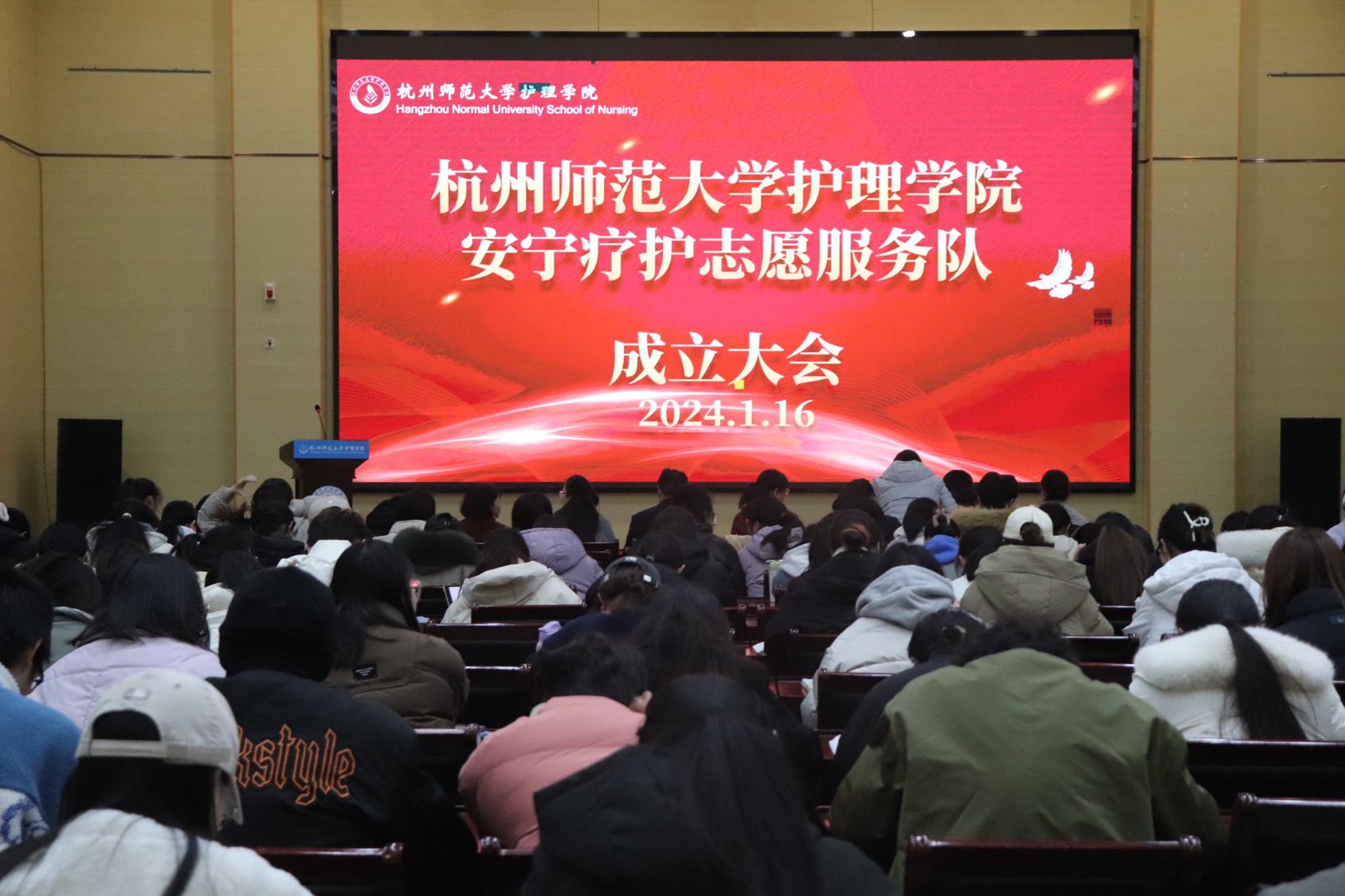 近日,杭州师范大学护理学院“大学生安宁疗护志愿服务队成立大会”在我校仓前校区隆重举行。莅临本次活动的校外嘉宾有杭州市卫生健康委老龄健康处代表何丹、北京荣基金在杭志愿者队伍负责人宋秀娟、浙江老年关怀医院护理部主任叶芳、杭州市肿瘤医院护理部副主任章建芳、浙江医院医疗照护病房副护士长杨舒岚、拱宸桥街道宸运社会组织服务中心安宁康养负责人邵凯。校团委志愿者指导中心主任王莹、我院党总支书记汪胜、我院副院长楼妍、学院师生参加大会。本次大会由护理学院辅导员郑俏芸主持。