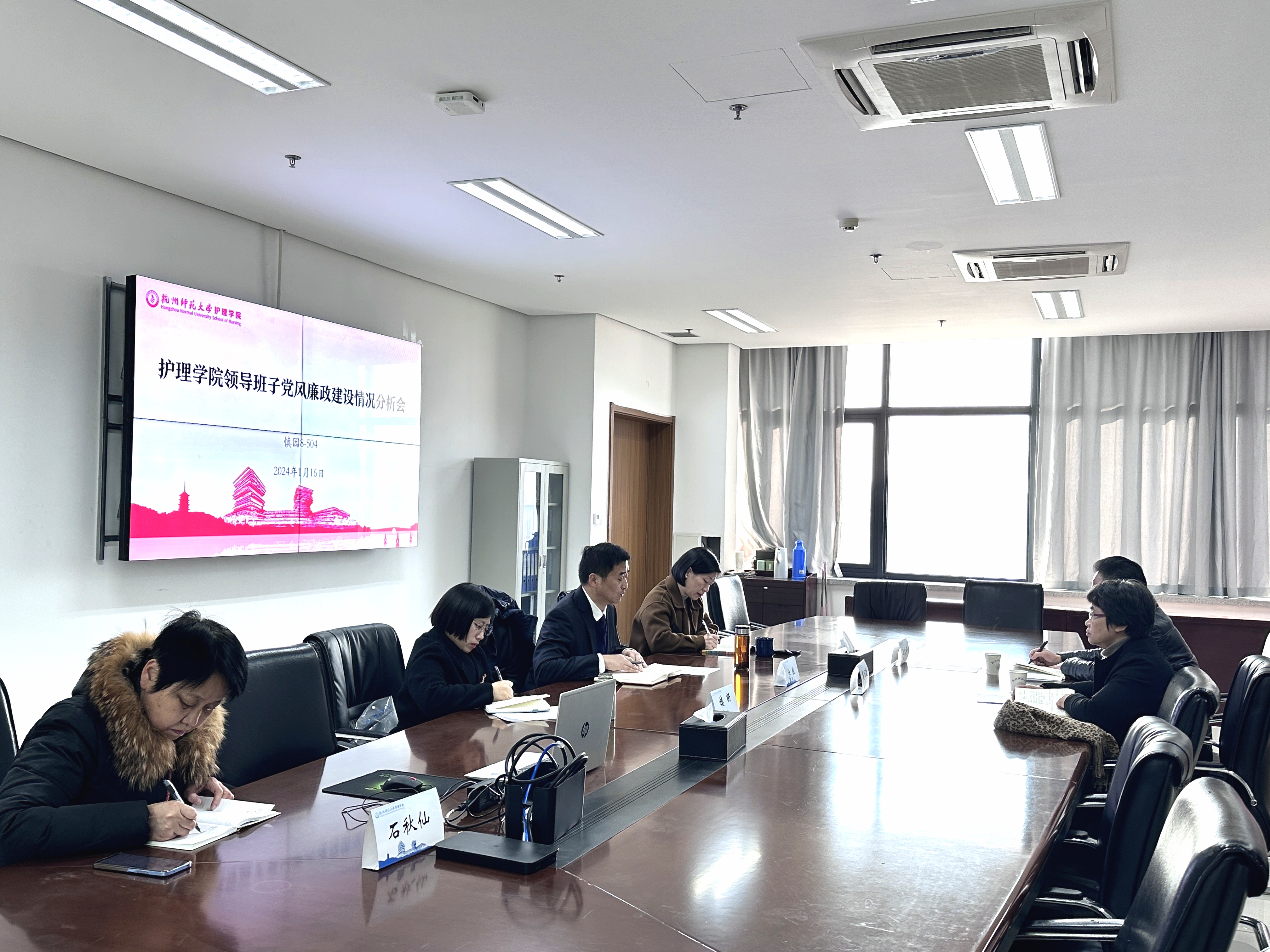 1月16日上午,护理学院召开领导班子党风廉政建设情况分析会,校党委委员、副校长戴丽敏、校纪委委员王忠平、护理学院党总支书记汪胜、副院长朱雪娇、副院长楼妍参加了会议。