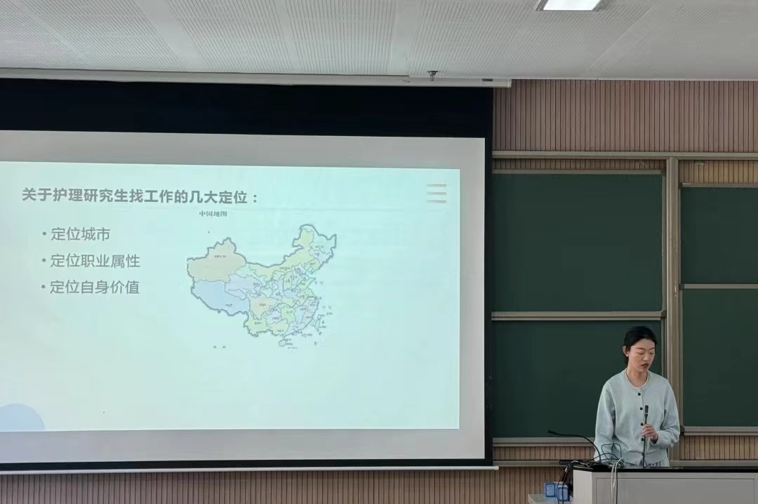 倪依莎学姐为在校研究生们详细介绍了护理研究生考取职高编制的相关流程、应对笔试及面试的学习方法、总结了成功上岸的经验。她告诉大家首先要明确自己的目标,其次要提前获取各种求职信息,提醒大家可以从校友群、公众号等搜寻并建议大家要提前做好准备,不要错过时间。