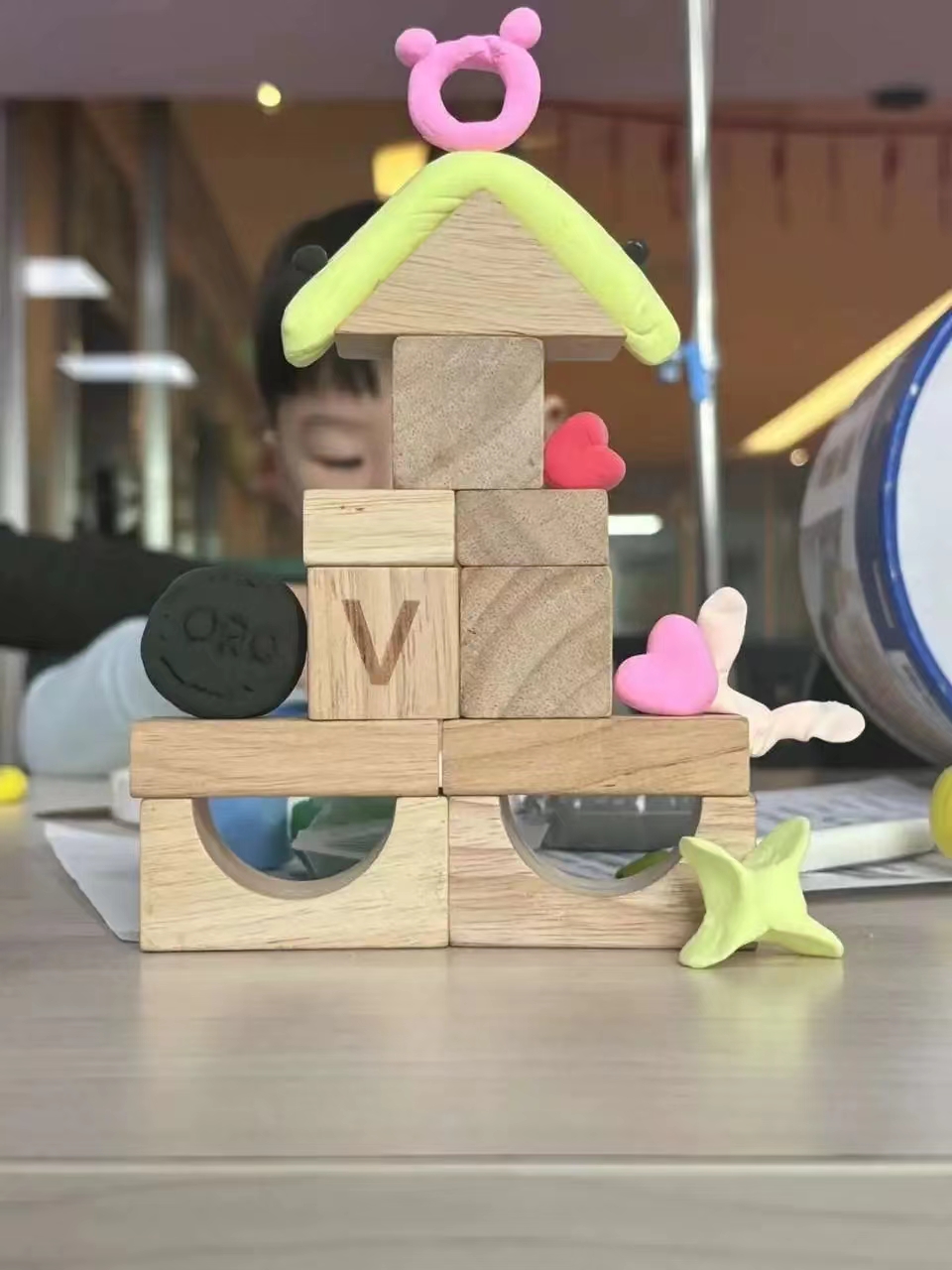积木配粘土,他称作米奇妙妙屋,我听更似小小游戏室,他骄傲的语气中藏不住那份喜悦。小妹细听着姐姐敲打音符,动静结合亦是井然有序。