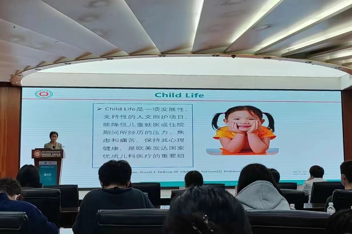 随后国际儿童医疗辅导师吴小花分享了浙大儿院的特色项目——Child Life(儿童医疗辅导)项目。院内有开设26间儿童游戏室,配备各种辅导服务器材、玩具、书籍等,联动浙大儿院“护佑童心”志愿者队伍为住院患儿及家长提供各种形式的治疗性游戏和娱乐活动,并进一步介绍志愿者如何在游戏室与儿童医疗辅导师配合child life的开展。