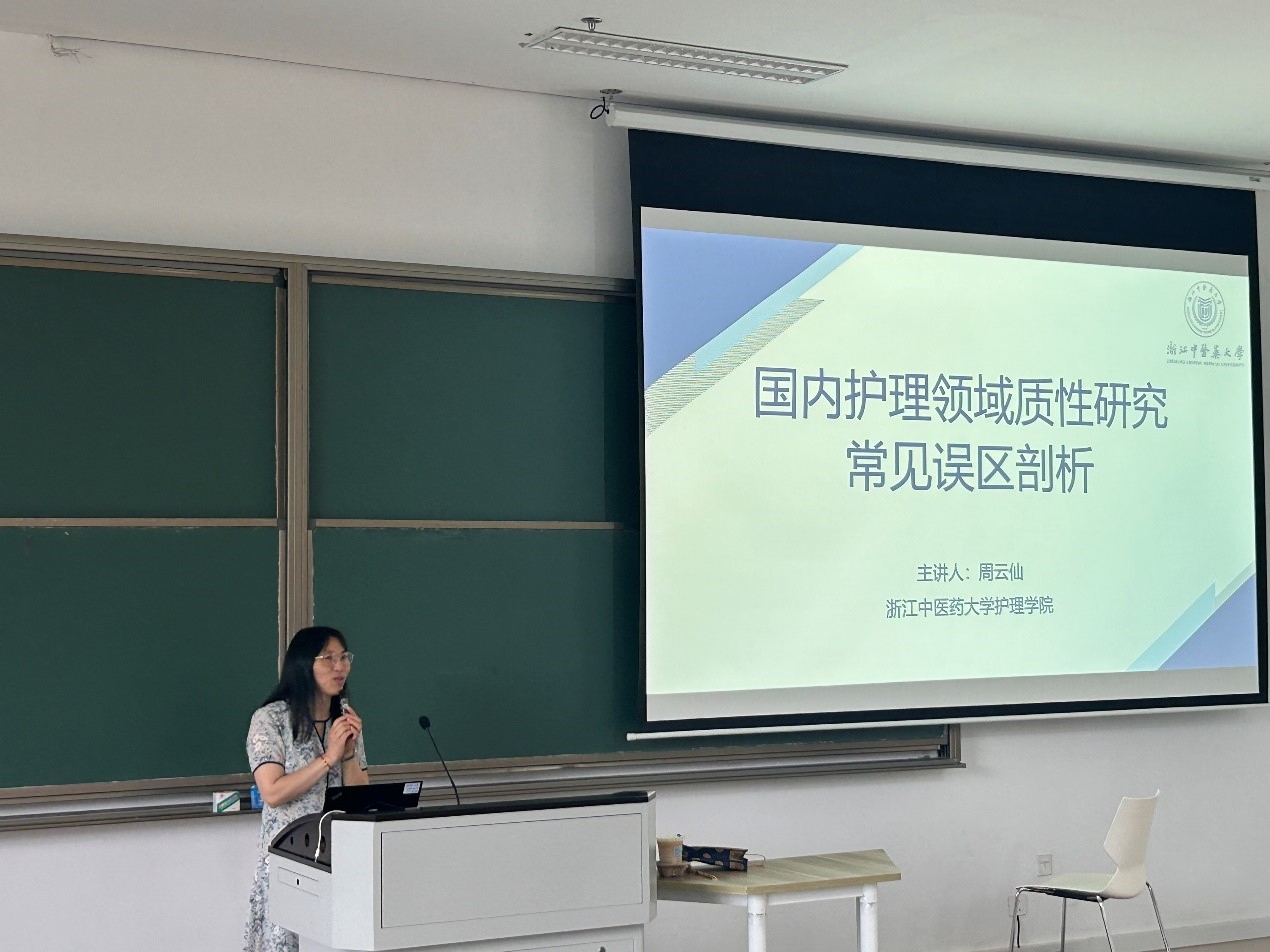 6月28日上午,护理学院特邀浙江中医药大学周云仙教授开展《国内护理领域质性研究常见误区剖析》主题讲座。护理学院副院长楼妍主持,护理学院全体领导班子,研究生导师及青年教师代表,2022级和2023级研究生全体参与。