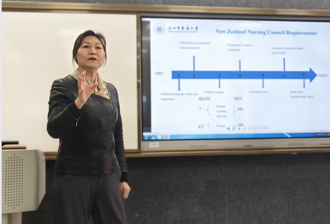 为协助护理国际留学生更好的就业,扩大国内研究生的国际视野,2024年12月20日下午,护理学院特邀浙江中医药大学护理学院孙穗明教授,做了一场关于国际护理注册的讲座。