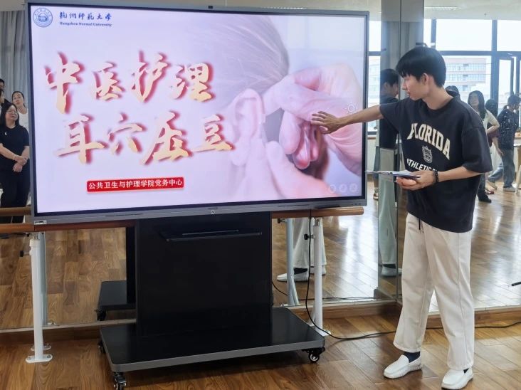 耳穴压豆体验区,学生根据教师症状辩证选穴,精准贴敷王不留行籽;颈肩按摩服务中,学生运用专业推、揉、按等手法,为教师定制“职场放松方案”。