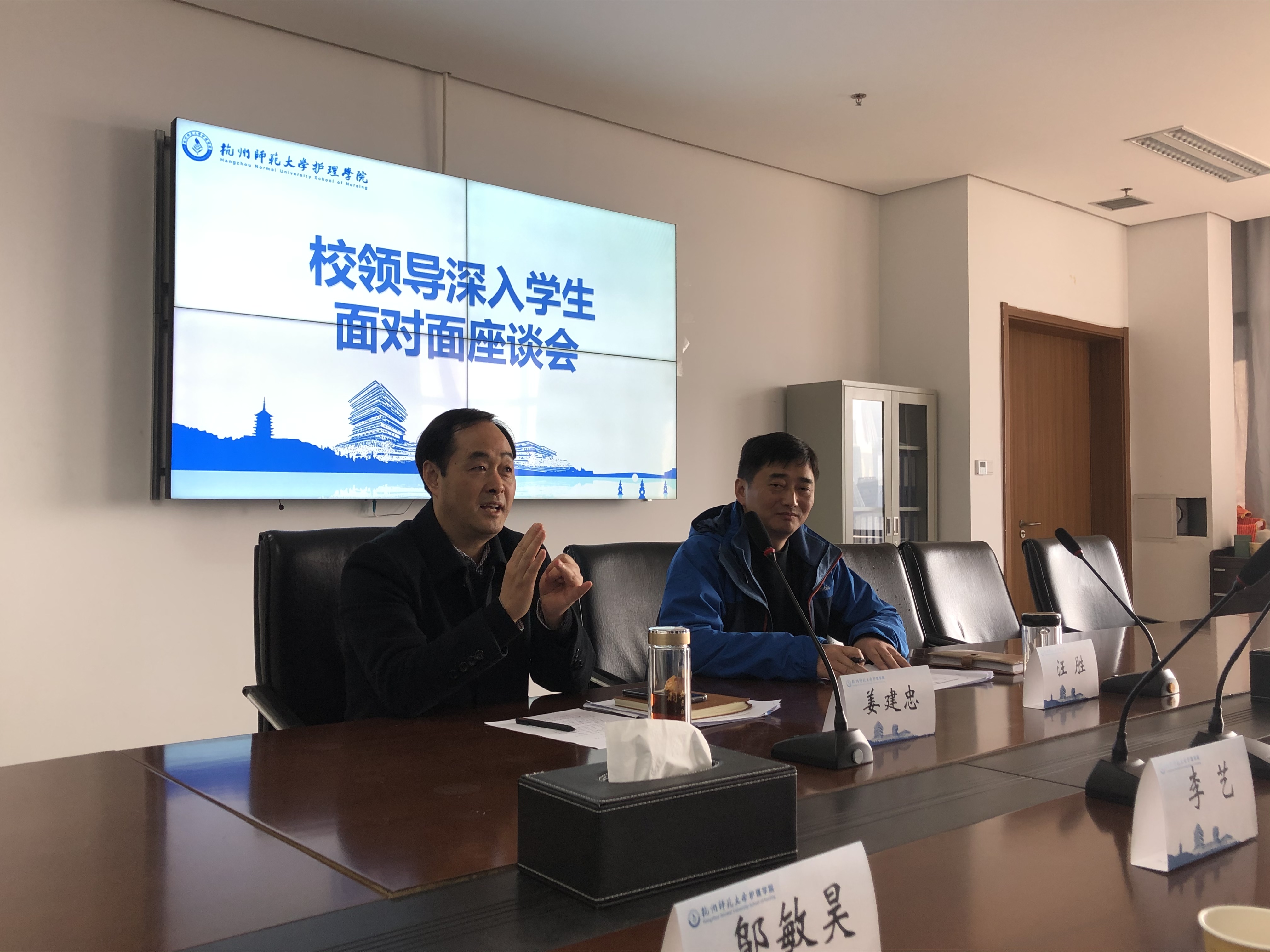 姜建忠老师对于同学们反馈的难题和意见作出详细的解答,姜老师也对同学们提出了殷切希望,希望同学们能珍惜大学时光,在做人、做事、做学问上多下功夫,下苦功夫,以青年大学生应有的饱满姿态面对未来生活学习中的各种挑战。同时,座谈会上,姜建忠也对老师们的育人工作提出要求,特别要求辅导员要努力做学生成长成才的人生导师和健康生活的知心朋友,因为每个孩子背后都是一个家庭的希望。