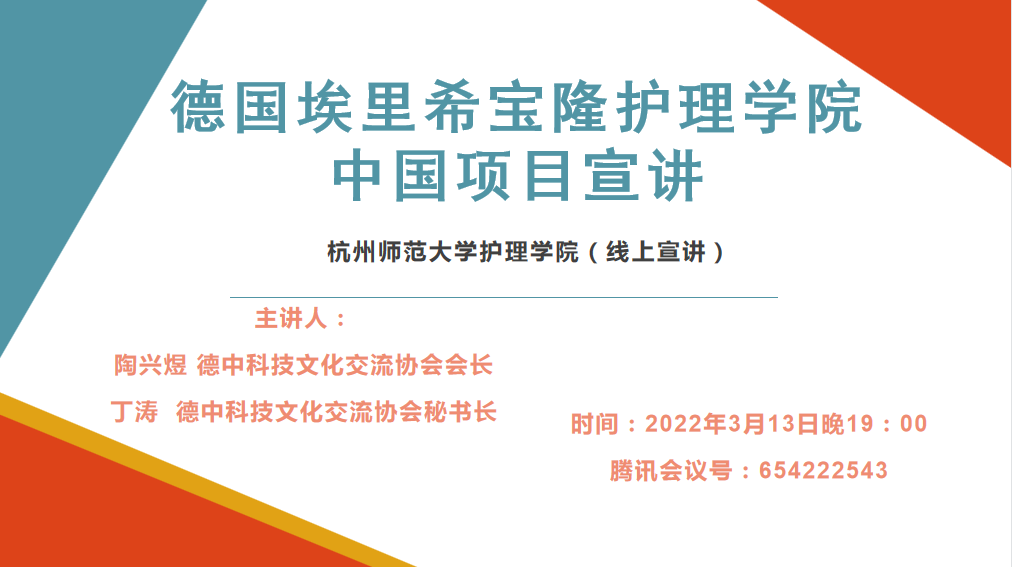 为了促进德中护理教育领域的深度合作交流,在德国州教育部及卫生部的支持下,德国埃里希.宝隆博士护理学院和德中科技文化交流协会(AWTK)于2014年共同启动了埃里希 . 宝隆博士护理交流项目,与武汉大学,同济大学,山东大学,苏州大学,长江大学,郑州大学,河南学,湖北中医药大学,武汉科技大学,中国医科大学,南京医科大学,西南医科大学,成都医学院,浙江中医药大学,杭州师范大学等众多院校建立了长期合作关系,旨在从全球化护理教育视角出发,合作培养全球化护理人才,以双向选择、择优录取方式,为中方合作院校学生提供在德国双元制护理教育体系下的学习机会。