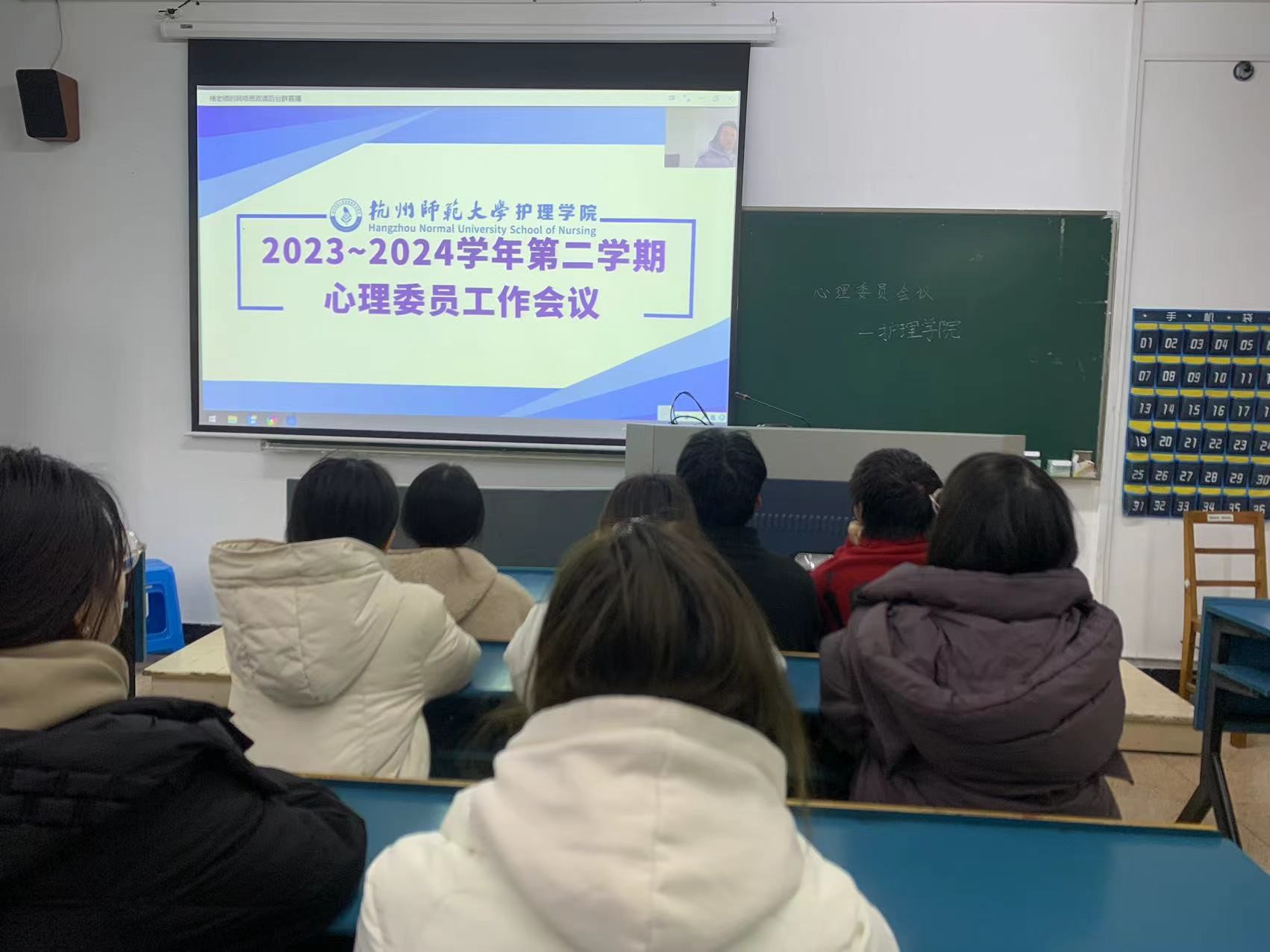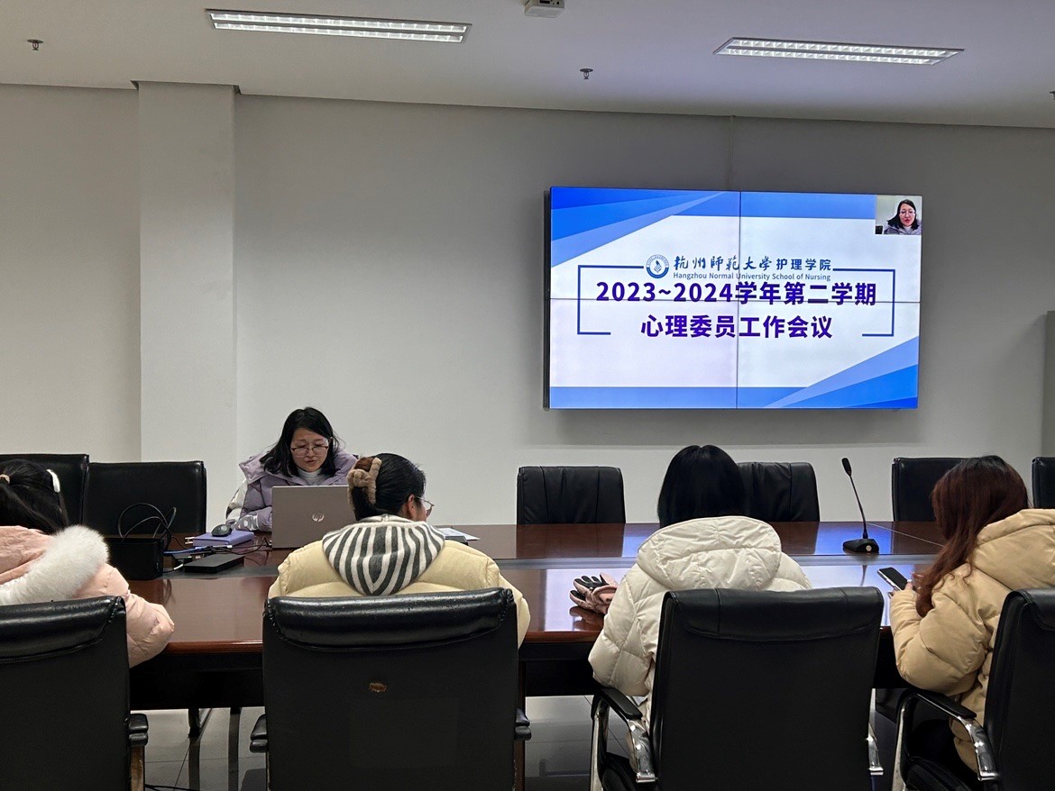 为提高心理委员的工作效率与质量,促进同学间良好氛围的形成,护理学院于2024年2月28日下午召开了本学期第一次心理委员工作会议,本次会议由学院心理辅导员褚晶晶主持。由于校区的不同,仓前校区的同学在慎8-504会议室参加线下会议;下沙校区的同学于A楼107集中观看直播,该校区的8位心理委员在分管辅导员张静老师的陪同下参与。