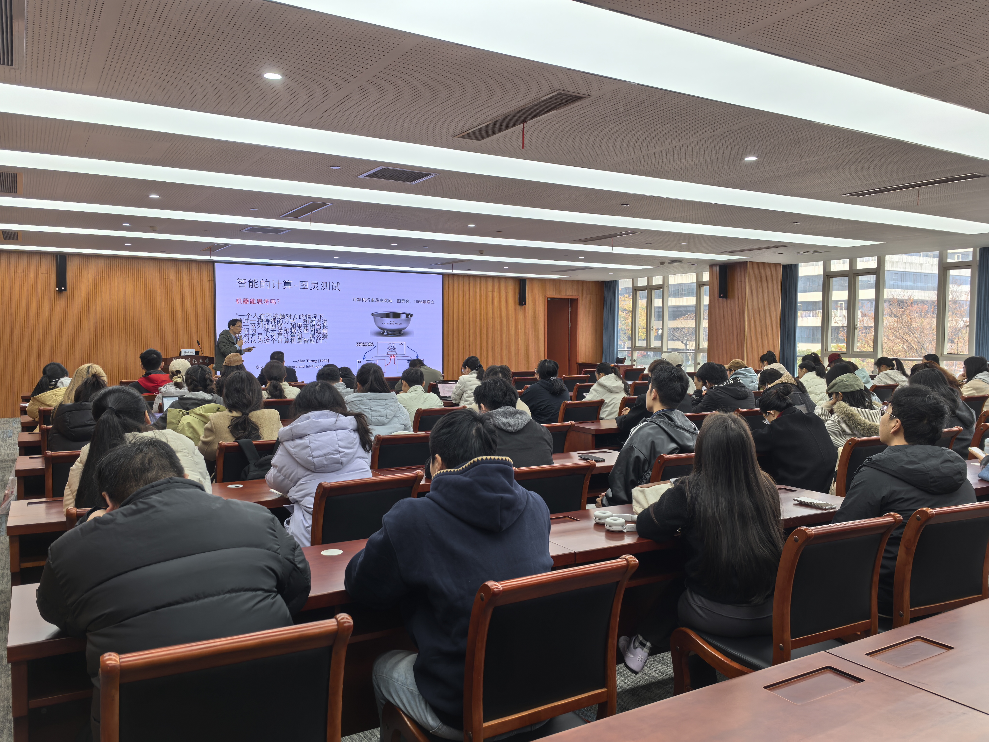 2025年12月10日,公共卫生与护理学院特邀信息科学与技术学院徐舒畅老师开展题为“图灵与人工智能发展演进及在护理科研中的应用”的主题讲座。公共卫生与护理学院教师、研究生和本科生共同参加。