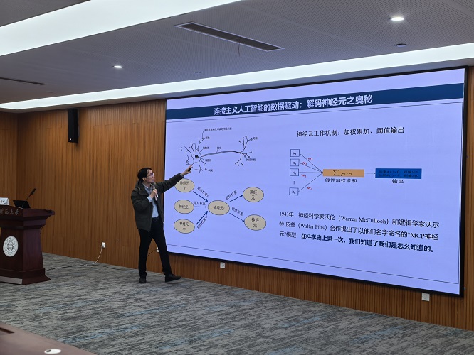徐舒畅老师以“现代计算机之父”阿兰·图灵及其提出的“图灵测试”为切入点,引出人工智能从符号主义向连接主义演进的历史脉络。徐老师详细阐述了神经网络作为连接主义的核心,如何模拟人脑神经元通过权重和激活函数来拟合现实世界的复杂分布,并指出虽然深度学习存在“黑盒子”特性,但在图像识别等领域已展现出超越人类的性能。随后,徐老师深入剖析了当今大模型爆发背后的三大基石——算力、算法与数据。他结合DeepSeek等开源模型的崛起,讲解了“思维链”技术如何赋予模型深度思考与自我反思的能力,并特别强调了高质量数据集在推动行业进步中的决定性作用,指出“数据是智能时代的燃料”,其重要性往往优于单纯的算法创新。