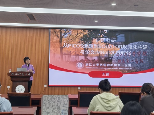 4月17日上午,杭州师范大学公共卫生与护理学院“勤慎论坛”专题讲座在仓前校区学术交流中心举行。浙江大学医学院附属第一医院王薇主任应邀作题为《护理科研从PICOS选题到EQUATOR规范化构建与论文IMRaD实践转化》的学术报告。讲座由分管研究生副院长主持,学院研究生及相关老师参加。